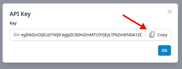 - Copy the key to your clipboard using the Copy button: