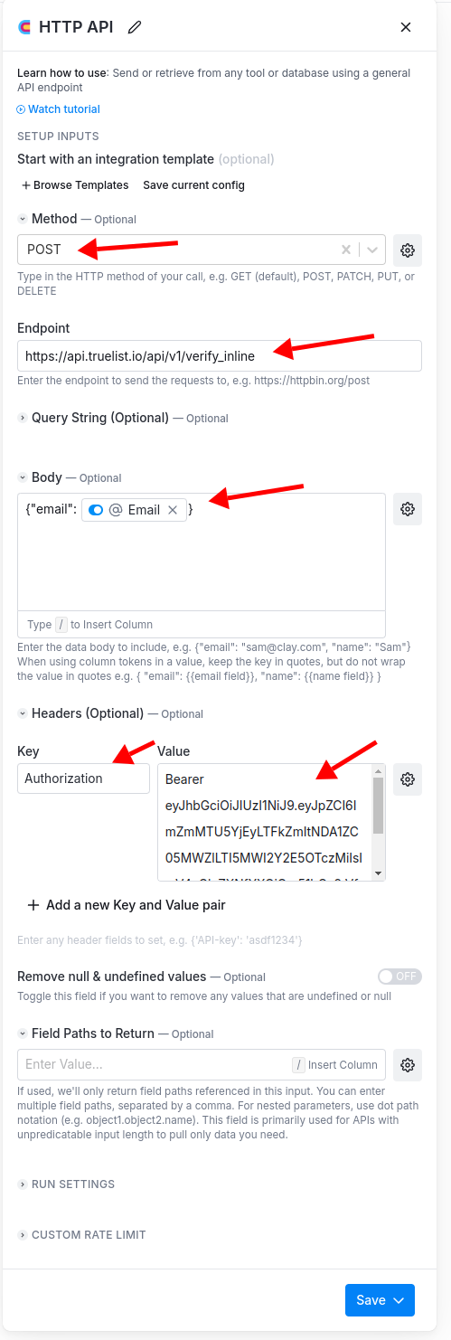Here’s a guide on how Clay.com users can utilize Truelist’s API for email validations on the Clay platform: